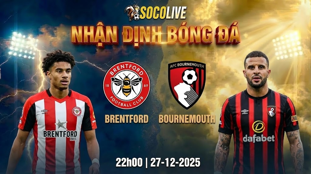 Brentford vs Bournemouth 22h00 ngày 27/12, là cặp đấu vừa tầm nhưng cực kỳ quan trọng cho cuộc đua nửa trên. Brentford có lợi thế sân nhà, có mũi nhọn ghi bàn ổn định, và đang lấy lại đà sau vòng trước. Bournemouth vẫn nguy hiểm nhờ khả năng phản công và các cá nhân tấn công giàu tốc độ, nhưng họ cần cải thiện sự chắc chắn ở tuyến giữa trong bối cảnh thiếu hụt nhân sự. Nếu Brentford giữ được nhịp áp sát và thắng các pha bóng hai, họ có nhiều cơ hội định đoạt trận đấu để khép lại năm 2025 bằng một chiến thắng.